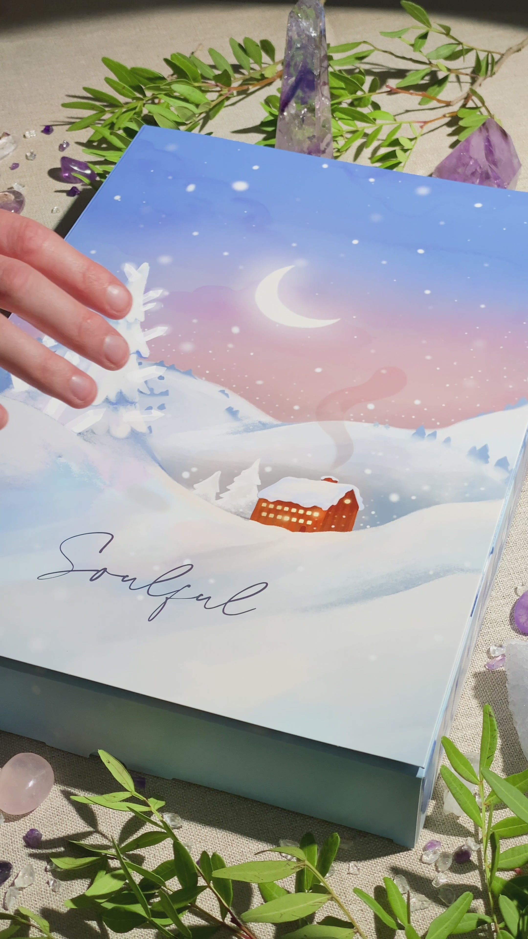 Årets krystaljulekalender har været længe undervejs. Vi startede udvælgelsen af krystaller allerede sidste år, og har igen i år haft en dygtig kunstner, Nynne Mors, til at skabe dens magiske udseende og nu er den her endelig!