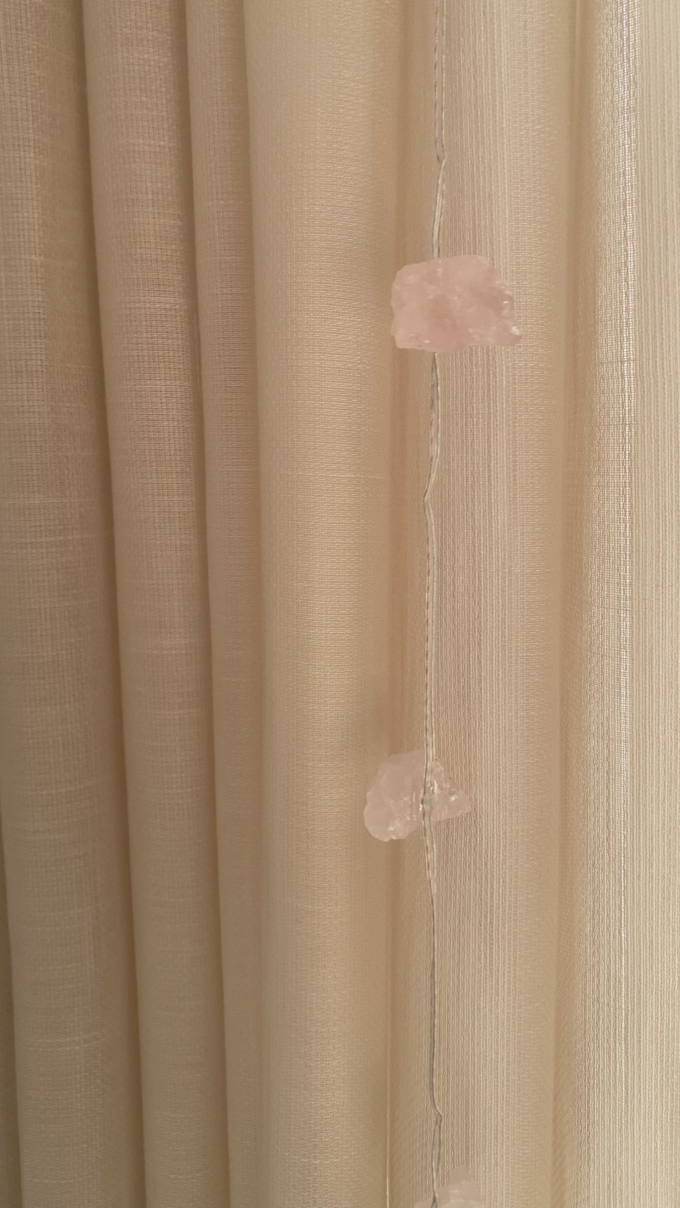 Fuldstændig magisk lyskæde med rå Rosakvarts Krystaller til at skabe den rareste energi i dit hjem. Krystallyskæden er det perfekte bidrag til din indretning, og skaber den dejligste stemning.
