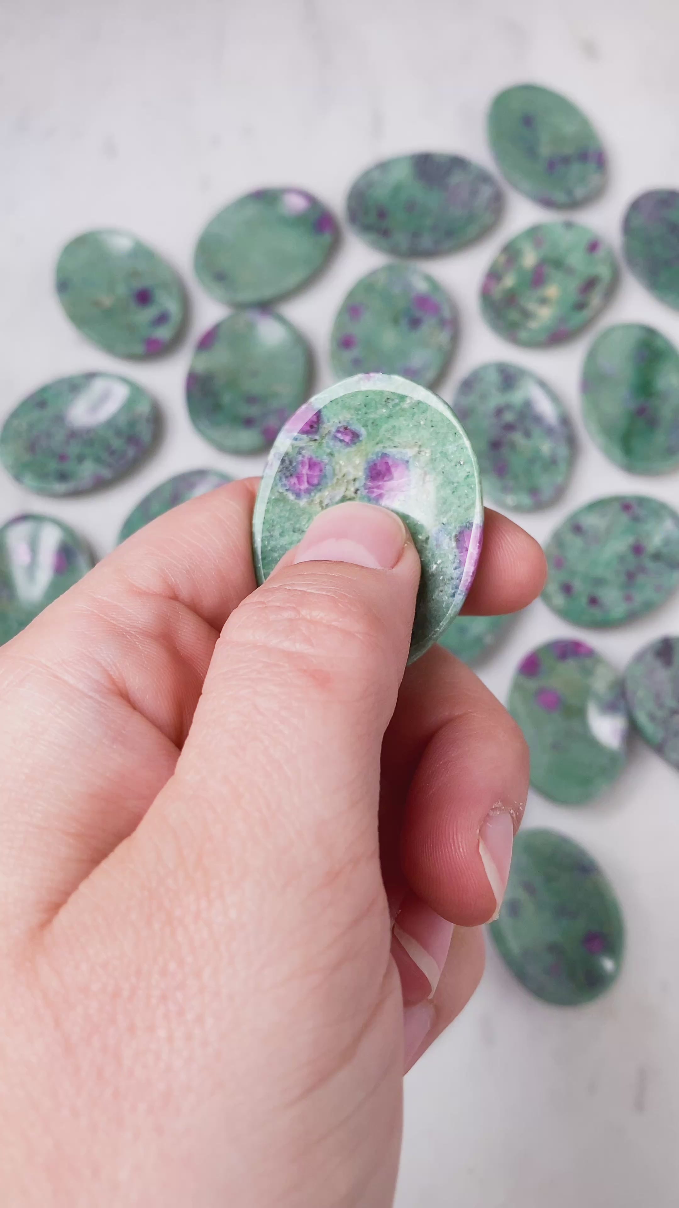 Du får en blid og hjerteåbnende energi i disse fine Rubin i Fuchsit lommesten. De er simpelthen i en fantastisk kvalitet og har den fineste form!