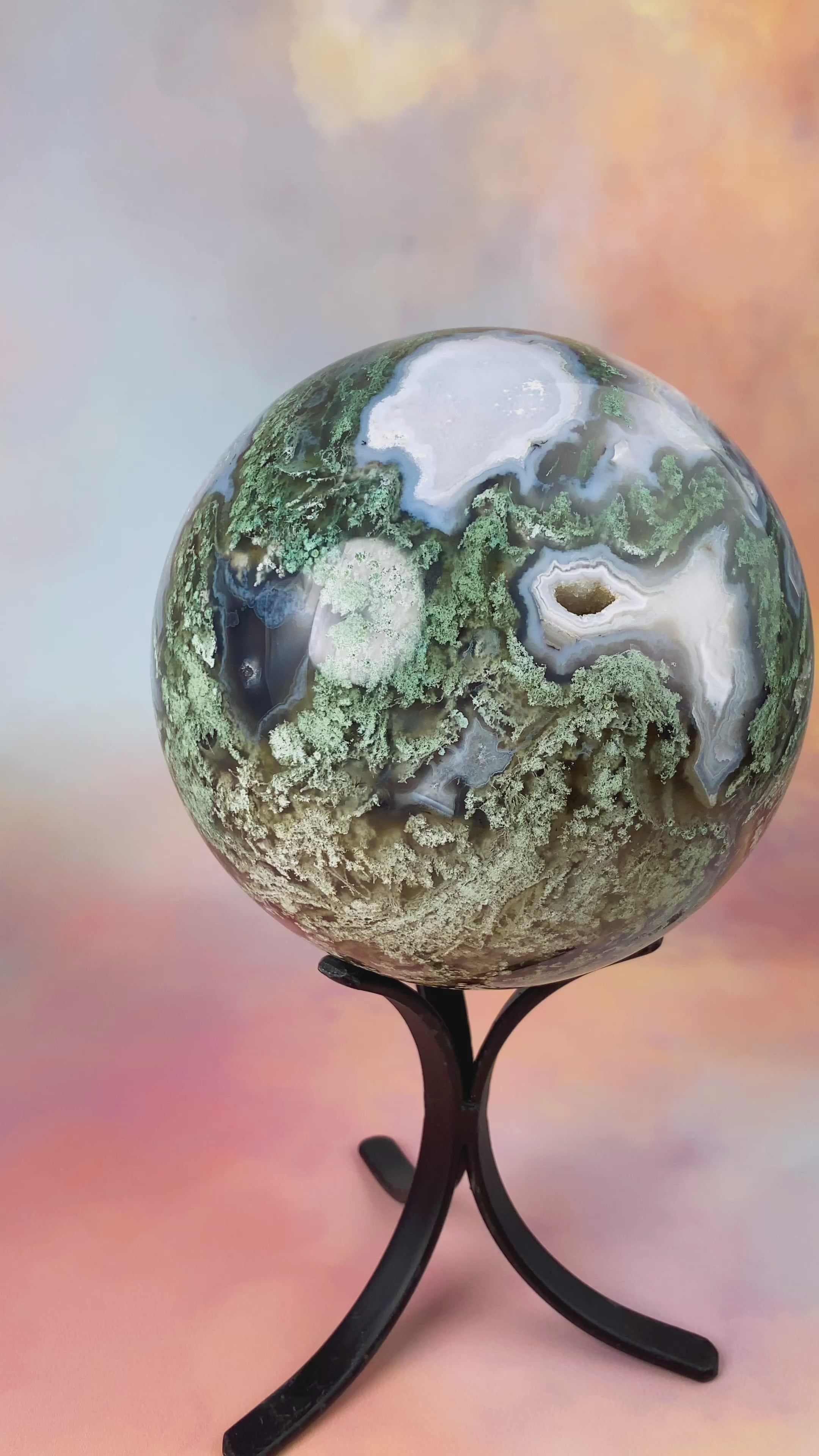 Den smukkeste store Mos Agat kugle, med de fineste grønne mønstre.